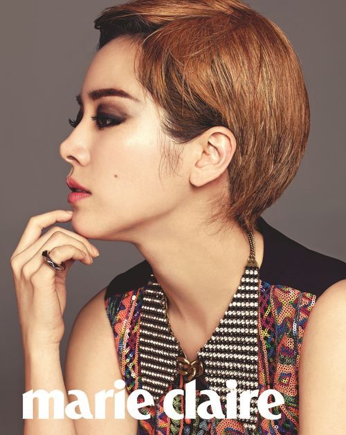 한지민은 최근 진행된 패션매거진 마리끌레르 6월호 화보촬영에서 오렌지 컬러의 숏커트 헤어와 과감한 스모키 메이크업을 선보였다.