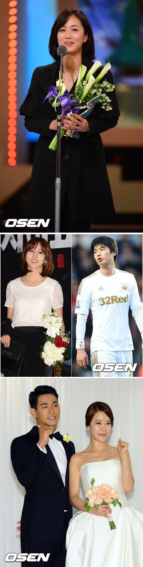 위에서 부터 정세진 KBS 아나운서, 한혜진-기성용 커플, 백지영-정석원 커플.