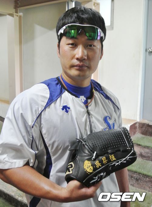 오승환이 지난 22일 대구 LG전에 앞서 스폰서 업체에서 받은 새 글러브를 선보였다. 글러브에는 자신의 이름과 함께 돌부처가 새겨져 있었다. "업체에서 받은 지 꽤 됐는데 얼마 전부터 사용하고 있다"는 게 그의 설명. 새 글러브에는 평정심을 유지하기 위한 오승환의 강한 의지가 엿보였다.