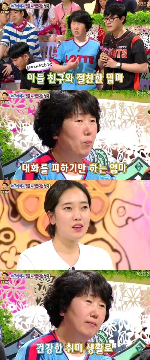 하지만 엄마는 “야구는 정직한 스포츠다”라며 롯데 자이언츠의 광팬임을 스스럼없이 드러냈다. 또 야구를 별로 좋아하지 않는 아들 대신 아들의 친구와 더 친하고 허물없이 지내는 모습을 보였다. 엄마는 스튜디오에 켜진 모니터를 보며 아들의 친구와 함께 실제 야구 응원을 하듯 ‘살아있네’, ‘롯데의 강민호’를 부르짖어 큰 웃음을 선사했다.