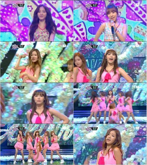 이들은 지난 4월 홍유경이 탈퇴하면서 6인조로 재편된 후 첫 번째 무대를 펼쳤다. 나란히 핑크색 의상을 갖춰 입은 이들은 깜찍한 안무와 표정으로 안방극장을 홀렸다.