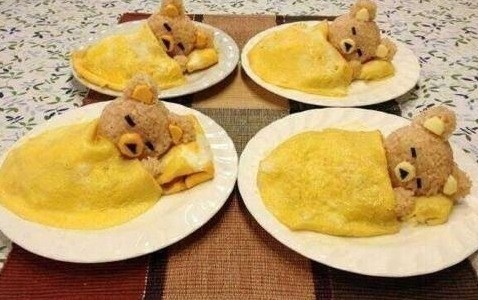 최근 온라인 커뮤니티엔 '일본 신개념 오므라이스' 사진이 올라와 네티즌의 폭풍 관심을 받고 있다. 사진 속 일본 신개념 오므라이스는 귀여운 곰 형태의 밥이 이불 모양의 달걀 부침을 덮고 있다. 너무나 귀엽고 앙증맞은 모양새가 먹기 아까울 정도. 사진은 일본에서 만들어진 새로운 오므라이스로 알려졌다.