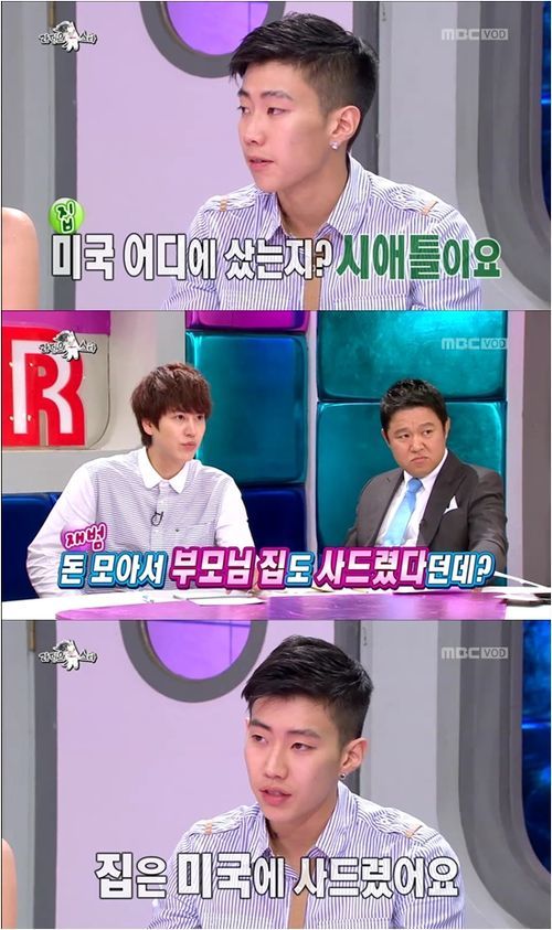 박재범은 지난 17일 방송된 MBC 예능프로그램 ‘황금어장-라디오스타’에서 부모에게 집선물을 했다고 털어놨다.