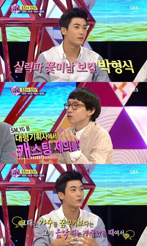 이날 봉태규는 “박형식이 고등학교 때 밴드부 보컬 출신이다. 경기도 대회에서 1등을 했다”며 “우리가 흔히 알고 있는 기획사 SM, YG에서 캐스팅 제의를 했었다고 하더라”고 말했다.