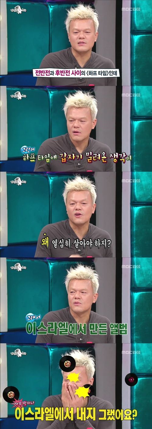 박진영은 지난 4일 오후 방송된 MBC 예능프로그램 '황금어장-라디오스타'에서 ‘하프타임’에 수록된 전곡을 이스라엘에서 만들었다고 밝혀 눈길을 끌었다.