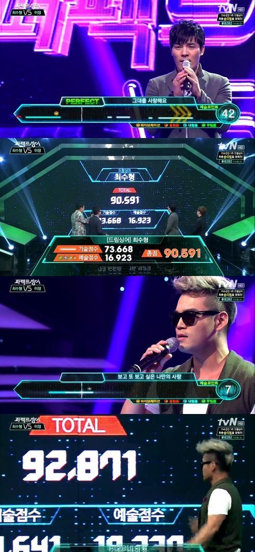 최수형은 13일 오후 방송된 케이블채널 tvN 예능프로그램 '퍼펙트 싱어 VS’에서 완벽한 감정전달로 뮤지컬 배우의 부진을 완벽하게 씻었다는 평가를 받았지만, 이정에게 아쉽게 패했다.