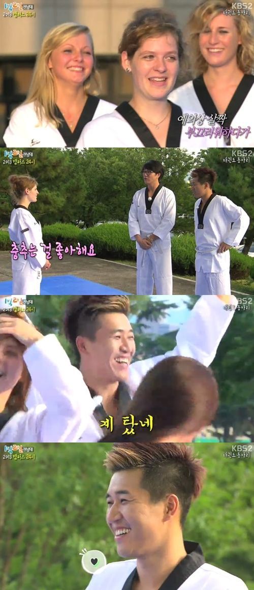 이날 전남대를 찾은 성시경과 김종민은 미녀 교환학생들이 운동하는 태권도 동아리를 발견하고 이들과 시간을 보냈다.