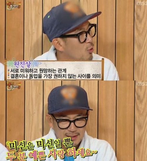 이에 MC 박미선이 "원진살이 뭐냐"고 물었고, 그는 "잘은 모르겠지만 잘 안 맞는 것 같다"며 장난기 가득한 표정으로 답해 웃음을 자아냈다.