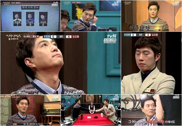 한편 '더 지니어스2'는 다양한 분야의 13명의 참가자가 총 12회전을 통해 최종 1인의 승자를 결정하는 방송이다. 매회 우승자를 가리는 메인매치와 탈락자를 가리는 데스매치로 진행되며 데스매치를 통해 매회 1명이 탈락한다. 현재까지 수학강사 남휘종(1회), 걸그룹 레인보우 재경(2회), 프로 바둑기사 이다혜(3회), 마술사 이은결(4회), 변호사 임윤선(5화), 회사원 이두희(6회), 홍진호(7회), 노홍철(8회), 조유영(9회), 은지원(10회), 그리고 유정현(11회)가 탈락했다.