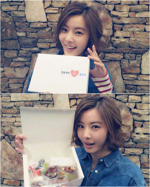 16일 소속사가 공개한 사진 속에는 스태프들에게 줄 머핀, 쿠키, 샌드위치, 과일, 견과류 등이 들어있는 간식을 들고 카메라를 향해 활짝 웃고 있는 윤소이의 깜찍한 모습이 담겨 있다. 특히, 윤소이가 마련한 간식 종합 선물세트에는 정월대보름을 맞이해 견과류까지 준비돼 있어 그의 깨알 센스를 엿보게해 눈길을 끌고 있다.