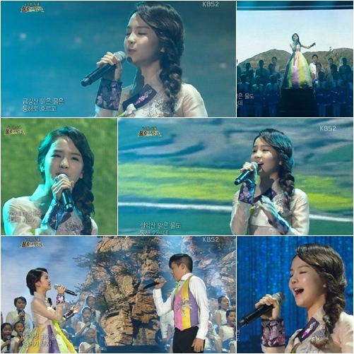 이날 송소희는 한복을 곱게 차려입고 무대에 올랐다. 그는 구슬픈 목소리로 '홀로 아리랑'을 불러 관객들에게 감동을 줬다. 또한 송소희는 홍경민과 완벽한 호흡을 맞추며 아름다운 하모니를 선사해 눈길을 사로잡았다.