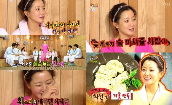 김희선의 진가는 야간매점에서도 드러났다. 그는 자신의 음식이 나오자 "모양부터 예쁘다"라며 극찬했고 다른 사람의 음식이 나오자 폭풍 디스를 했다. 특히 택연이 오븐에 구운 사과 음식을 들고 나오자 "오븐이 없는 사람들은 못 먹느냐. 오븐 값까지 음식 값에 넣어라"라고 우겨 큰 웃음을 줬다.