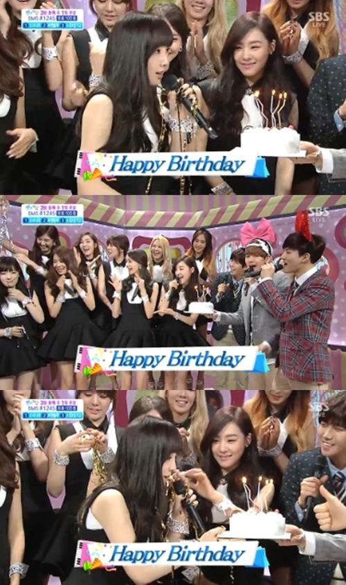 수호와 백현은 9일 방송된 SBS 가요프로그램 '인기가요' 인터뷰 중 생일케이크를 들고 나타나 생일 축하 노래를 불러 눈길을 끌었다.