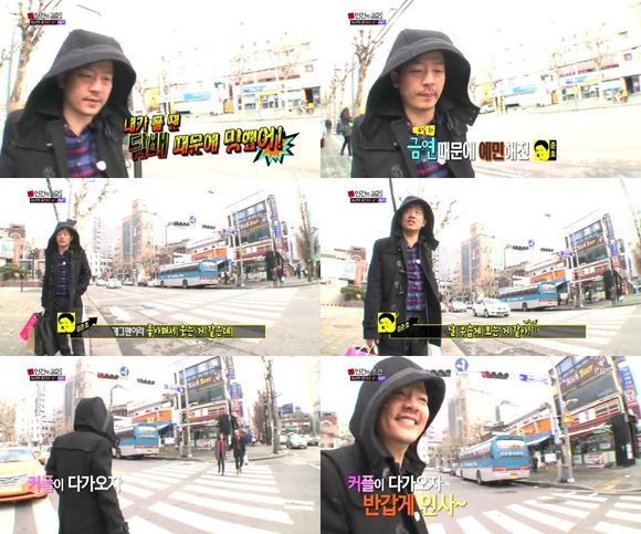 이어 횡단보도에서 신호를 기다리던 그는 "예전에는 맞은 편 분들이 나를 보고 웃으면 개그맨이라 웃는다 생각했는데 지금은 날 우습게 보는 것 같다. 다 부정적으로 보인다"라고 덧붙여 보는 이들을 폭소케 했다.