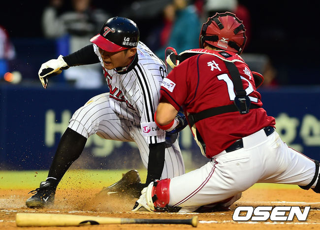 홈에서 오지환과 차일목의 접전이 펼쳐지는 상황, 오지환이 간발의 차이로 왼손으로 홈플레이트를 쳤고 차일목의 태그가 이뤄졌는데 최수원 심판은 아웃 판정을 내렸다. 주말 3연전 1차전과 마찬가지로 승부의 향방을 가를 수 있는 상황서 오심이 나왔다.