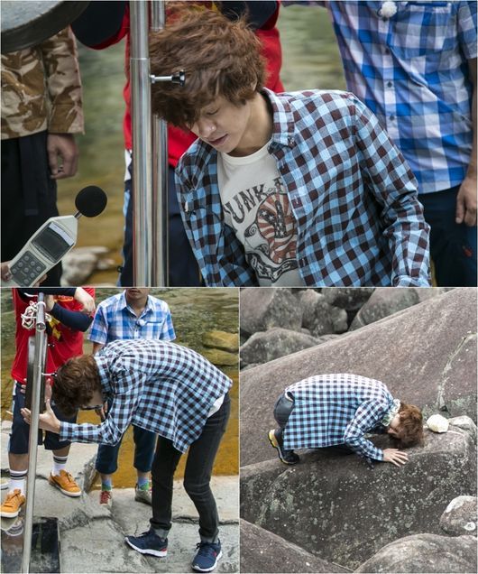 또한 함께 공개된 다른 사진 속에는 정준영이 커다란 바위에 머리를 대고 있는 모습이 담겨있어 시선을 사로잡는다. 마치 퇴근에 대한 간절한 마음에 고사라도 지내는 듯 큰절을 올리는 정준영의 모습이 보는 사람으로 하여금 웃음 짓게 만들며, 동시에 무슨 상황인지에 대한 궁금증까지 자아내고 있다.