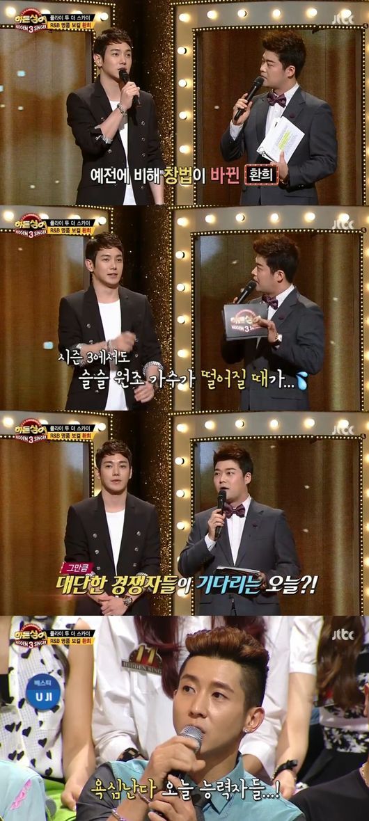 13일 오후 방송된 JTBC ‘히든싱어3’에는 플라이투더스카이 멤버 환희가 다섯 명의 모창 능력자들과 대결을 펼치는 내용이 전파를 탔다.