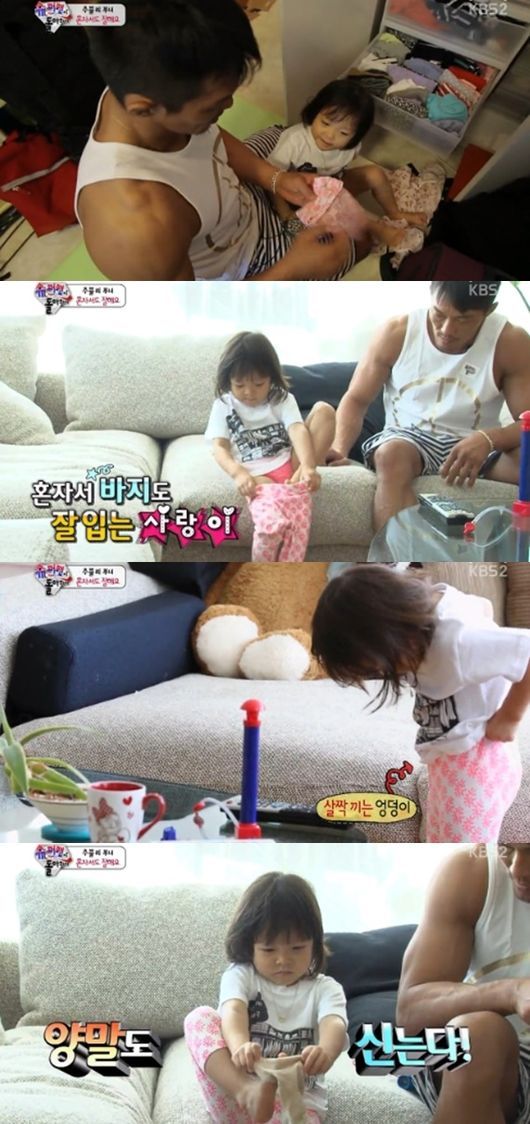 26일 방송된 KBS 2TV 예능프로그램 ‘해피선데이-슈퍼맨이 돌아왔다’에서는 혼자 옷입기도 척척 해내는 추사랑의 모습이 그려졌다.