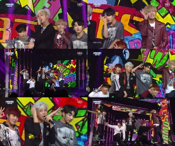 방탄소년단은 2일 오후 방송된 SBS '인기가요'에 출연해 '호르몬 전쟁'의 무대를 꾸몄다.