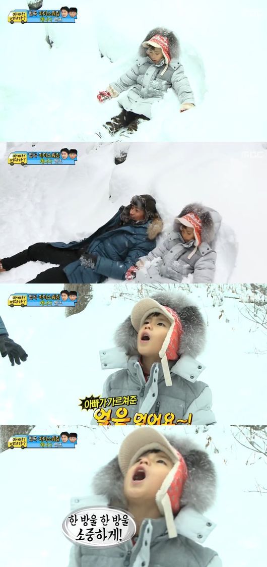 이어 그는 목이 마르다며 눈을 먹기 시작, 천진함을 선보여 시청자들의 엄마미소를 유발했다.
