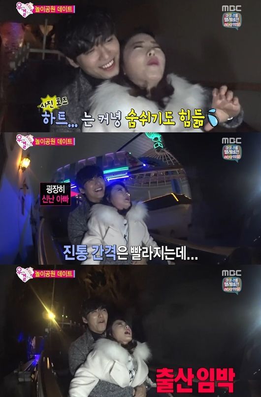 홍진영은 28일 오후 방송된 MBC ‘우리 결혼했어요 시즌4(이하 ’우결‘)’에서 놀이기구를 타며 무서워해 눈길을 끌었다.