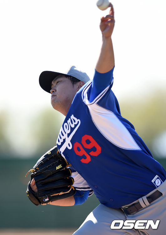 LA 다저스 류현진이 8일(한국시각) 미국 애리조나주 글렌데일 캐멀벡랜치에서 라이브 피칭을 소화했다.