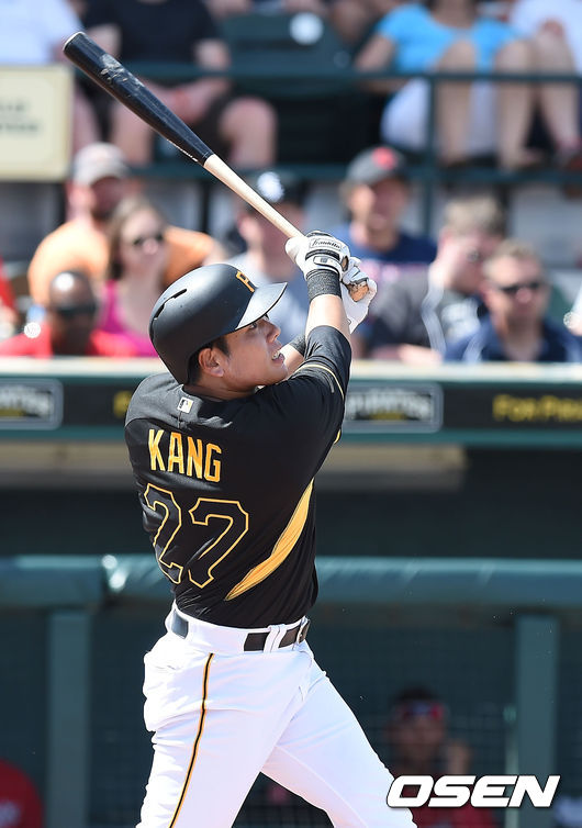강정호는 4일(한국시간) 미국 펜실베이니아주 필라델피아의 시티즌스 뱅크 파크에서 열린 ‘2015 메이저리그’ 필라델피아 필리스와의 시범경기에 대수비(3루수)로 출장한 뒤 돌아온 타석에서 2루타를 날렸다. 2타수 1안타를 기록한 강정호의 시범경기 타율은 1할9푼에서 2할5리(44타수 9안타)로 올라갔다.
