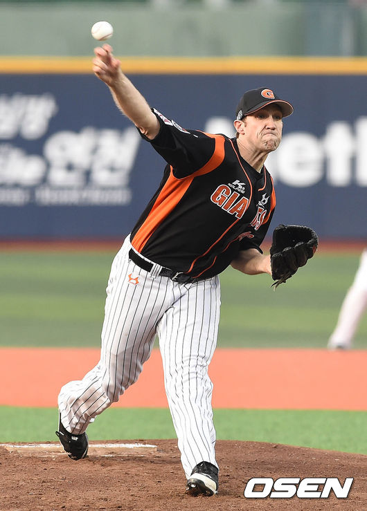 롯데 자이언츠 우완 조쉬 린드블럼이 많은 피안타에도 위기 관리 능력을 선보였다