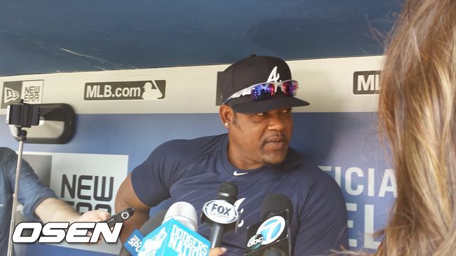 [OSEN=다저스타디움(LA 미국 캘리포니아주), 박승현 특파원]오늘은 필드를 가로질렀을 뿐이지만 앞으로는 소속한 지구도 달라지는 남의 팀이다. 28일(이하 한국시간)애틀랜타 브레이브스로 트레이드 된 내야수 후안 유리베가 아직은 어색할 다저스타디움 1루쪽 덕아웃에서 인터뷰를 가졌다.