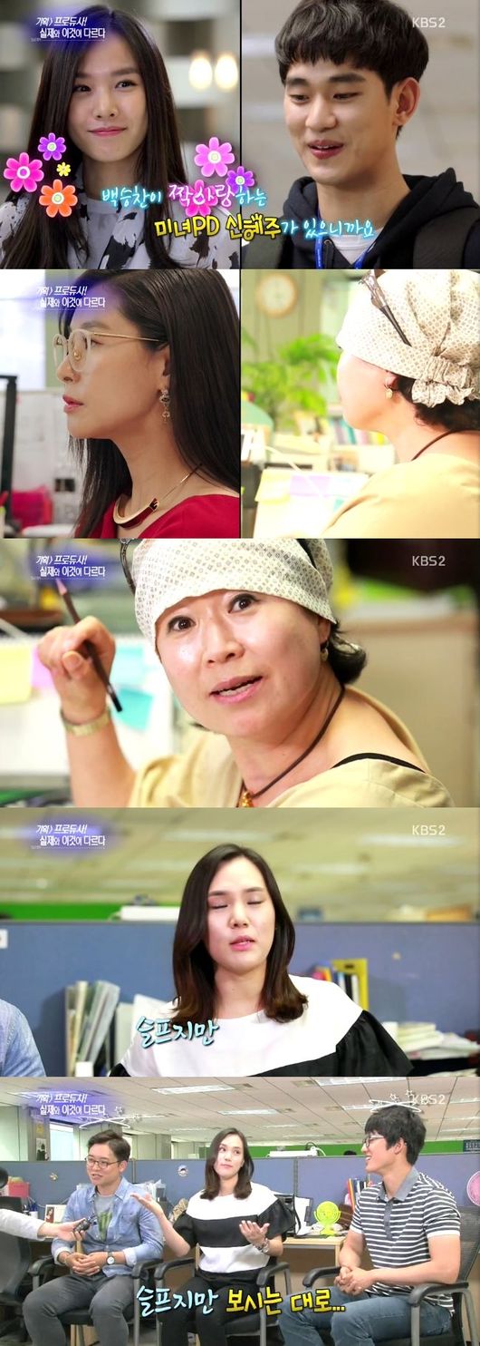 이날 실제 KBS 예능국 신입PD들은 짧은 인터뷰를 가졌다. 실제 '프로듀사'에 이름이 등장하는 방글이 PD는 "김수현 같은 PD가 있느냐"는 질문에 대해 "슬프지만 아무리 찾아봐도 없다"고 말해 웃음을 줬다.