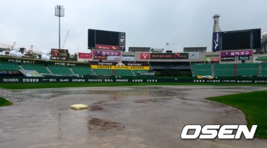 SK 와이번스와 삼성 라이온즈의 맞대결이 비로 취소됐다.