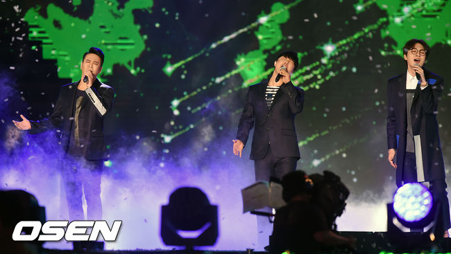 5일 오후 서울 마포구 상암MBC 앞 상암문화광장에서 열린 K-ICT와 함께하는 K-POP 슈퍼콘서트(DMC 페스티벌 슈퍼콘서트, 케이팝 슈퍼콘서트)서 SG워너비가 열창을 하고 있다.