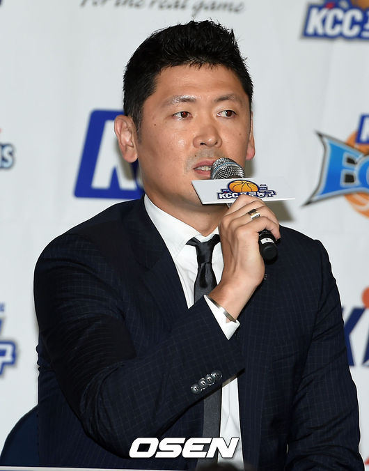7일 오전 서울 강남구 반포동 소재 JW메리어트호텔 그랜드 볼룸에서 열린 2015-2016시즌 개막 미디어데이에서 KCC 추승균 감독이 소감을 말하고 있다.