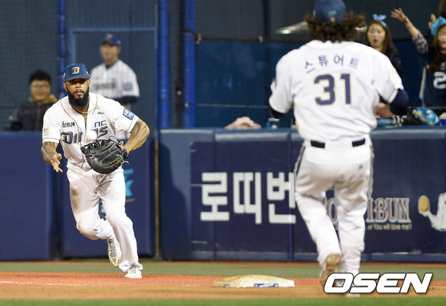 테임즈는 1~2차전에서 연속 3타수 1안타를 기록 중이다. 강력한 임팩트는 없어도 타구의 질이 매우 날카롭다. 그는 "내 개인적인 것을 떠나 팀 승리가 기쁘다. 작년 준플레이오프에서는 잠실 원정에서 1승했는데 올해는 마산에서 첫 승이라 더욱 의미 있다"며 플레이오프 승리를 다짐했다. /waw@osen.co.kr