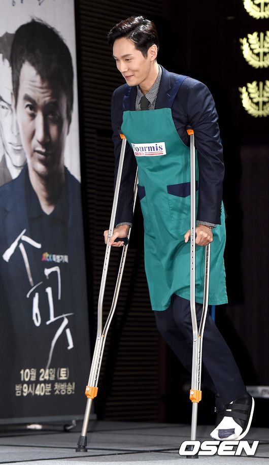 배우 지현우가 21일 오후 서울 중구 반얀트리 클럽 앤 스파 서울에서 진행된 JTBC 드라마 '송곳' 제작발표회에 참석해 포토타임을 갖기 위해 무대에 오르고 있다.