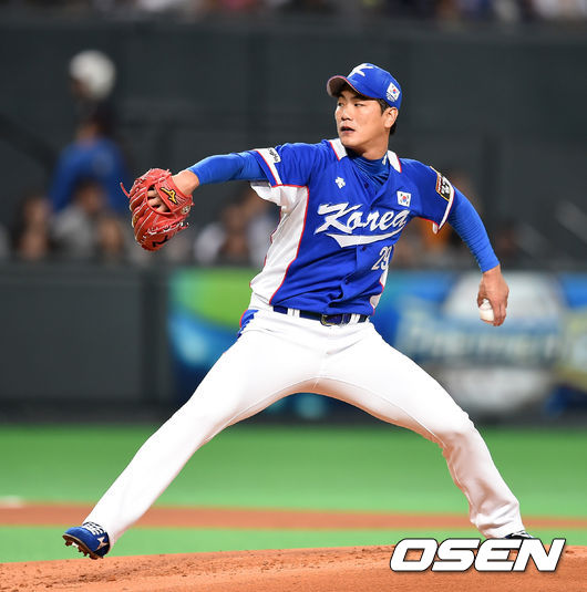 프리미어 12 대표팀 좌완 선발 김광현이 매 이닝 위기에 놓이며 어려운 경기를 펼쳤다.
