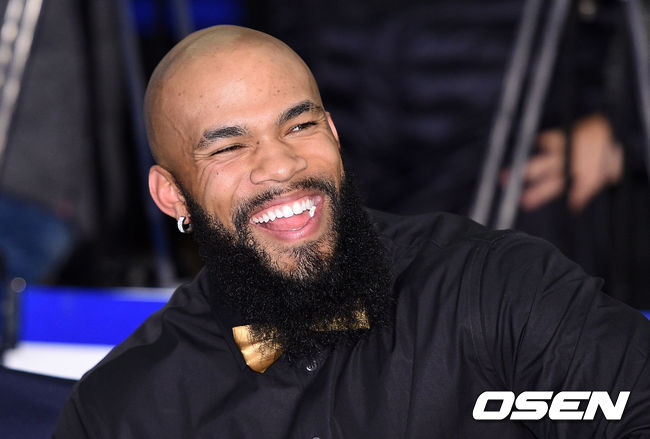 시상식에 앞서 NC 테임즈가 환하게 웃고 있다.