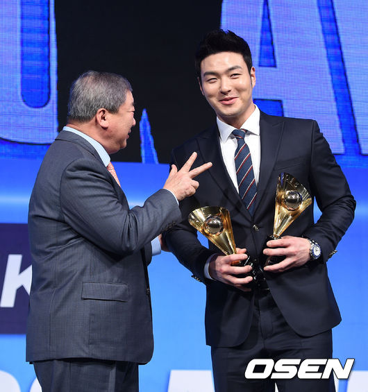 24일 오후 서울 서초구 The-K 호텔 컨벤션센터 그랜드볼룸에서 올 시즌 최고의 활약을 선보인 MVP와 신인상을 선정하는 2015 타이어뱅크 KBO 시상식이 열렸다.
