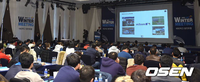 ‘2015 KBO 윈터미팅 발전포럼’이 9일 서울 양재동 The-K 호텔에서 열렸다. 이날 포럼은 공개로 진행돼 KBO 리그 관계자뿐만 아니라 국내외 전문가, 야구팬들이 함께 참석했다. 해외 스포츠 사례를 통한 KBO 리그의 발전 방향, 그리고 스포츠산업 진흥법, 리그 이슈 점검 등 다양한 주제로 포럼이 구성됐다. 프로야구 관계자, 그리고 야구팬 약 500여 명이 행사에 참석했다.