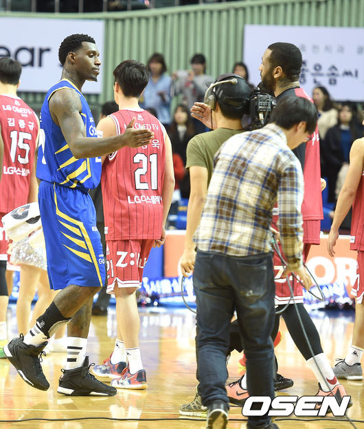 경기종료, 승리한 삼성 라틀리프와 LG 길렌워터가 인사를 나누고 있다. /ouxou@osen.co.kr
