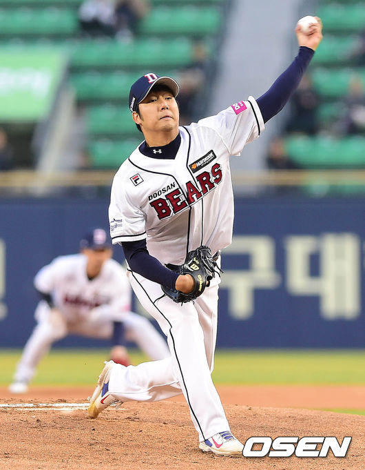 두산 장원준이 시즌 첫 등판에서 승리 요건을 채웠다.