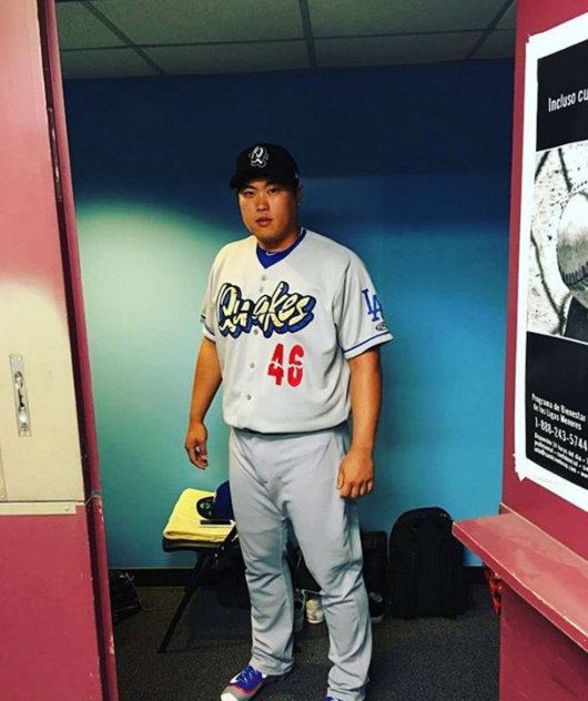류현진은 16일 자신의 인스타그램에 "My minor league debut"(나의 마이너리그 데뷔)라는 말과 함께 자신의 사진을 올렸다.