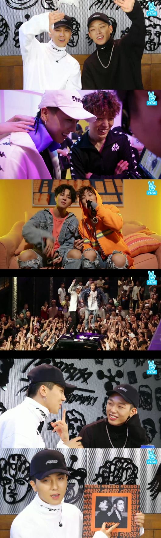 지난 8일 오후 네이버 V앱을 통해 방송된 '민호X바비 MOBB 타운 라이브'에서는 송민호와 바비가 출연해 신곡 ‘붐벼’와 ‘빨리 전화해’ 메이킹 영상과 뮤직비디오를 공개하며 유닛 데뷔를 자축했다.