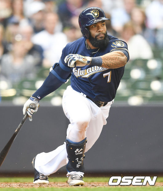 두 번째 타석에서는 안타를 쳤다. 1-1로 맞선 3회 무사 1루에서 리크의 2구째 커터가 몸쪽으로 들어오자 이를 받아쳐 1·2루간을 총알처럼 지나가는 우전안타를 만들었다. 시즌 23번째 안타. 이 안타 때 1루 주자 비야가 3루까지 갔고, 밀워키는 1사 후 쇼의 희생플라이 때 1점을 추가했다.