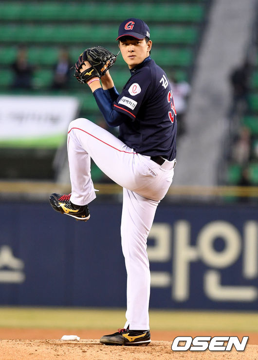 2-0으로 앞선 1회말 선두타자 허경민에게 볼넷을 내줬지만, 최주환의 땅볼로 선행 주자를 잡았다. 이어서 박건우 역시 땅볼로 처리하며 1루 주자를 2루에서 잡았다. 2사 1루 상황. 김재환을 몸에 맞는 공으로 내보낸 뒤 양의지에게 적시타를 맞아 첫 실점을 했다. 이후 오재일을 포수 땅볼로 처리하며 이닝을 끝냈다.