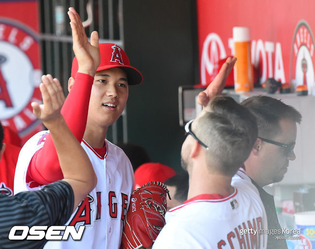 '타자' 오타니는 최근 3경기 연속 홈런포를 터뜨리며 메이저리그를 경악시키고 있다. 오타니는 지난 4일 클리블랜드, 5일 클리블랜드, 7일 오클랜드 상대로 홈런 1개씩을 쏘아올렸다.