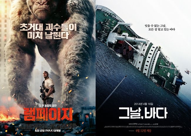 영화 '램페이지'와 '그날, 바다'가 예매율 1, 2위로 박스오피스 판도 변화를 예고하고 있다.