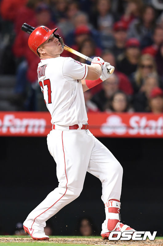 트라웃은 올 시즌 타율 2할8푼6리, 홈런 6개, 13타점을 치고 있다. ESPN이 조사한 메이저리그 선수랭킹에서 트라웃은 전체 1위, 오타니는 52위를 차지했다. / jasonseo34@osen.co.kr