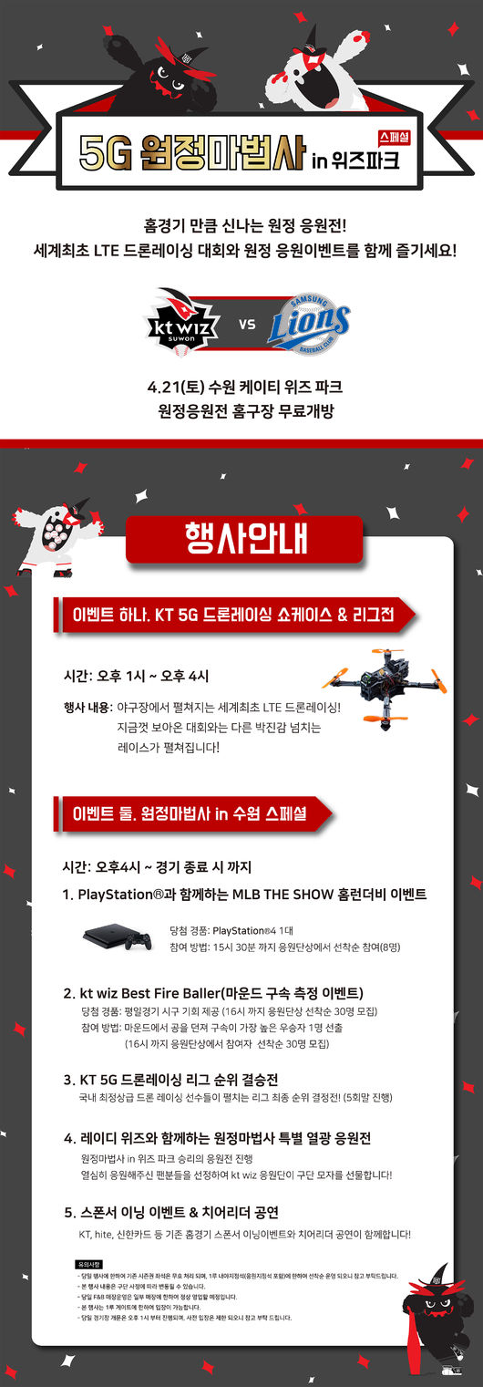kt wiz 프로야구단 (대표이사 유태열, ktwiz.co.kr)이 오는 21일(토) 삼성과의 대구 원정 경기 선전을 기원하며, 수원 KT 위즈파크에서 ‘KT 5G 원정마법사 in 수원 스페셜’ 행사를 진행한다.