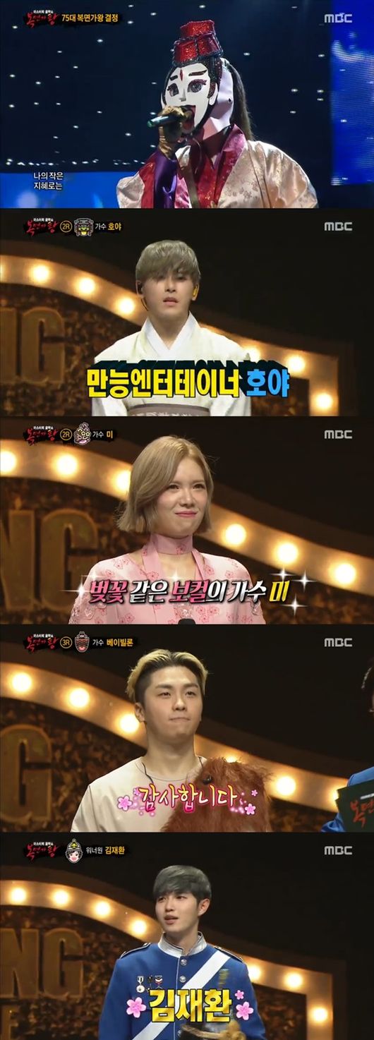 '복면가왕'의 동방불패가 조용필의 노래로 75대 가왕에 올랐다. 호야, 미, 베이빌론, 워너원 김재환은 반전 정체를 공개했다.